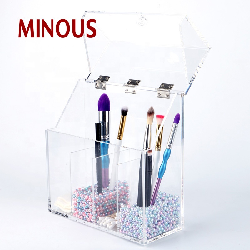 Hot Sale Rectangle Clear Acrylic Makeup Brush Display Stand With Lid |
